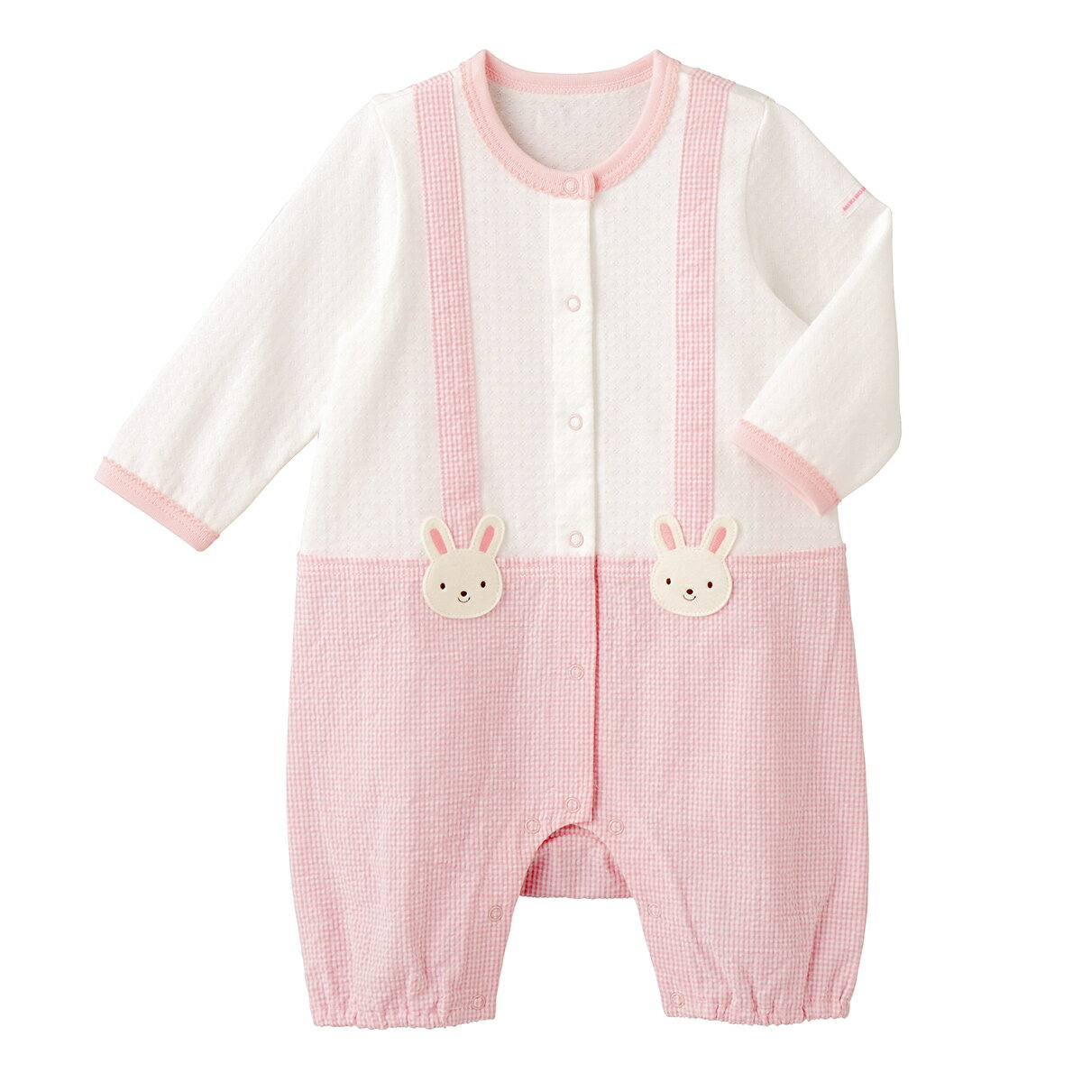 ミキハウス mikihouse くまちゃんうさちゃんのサロペット風カバーオール(70cm・80cm)