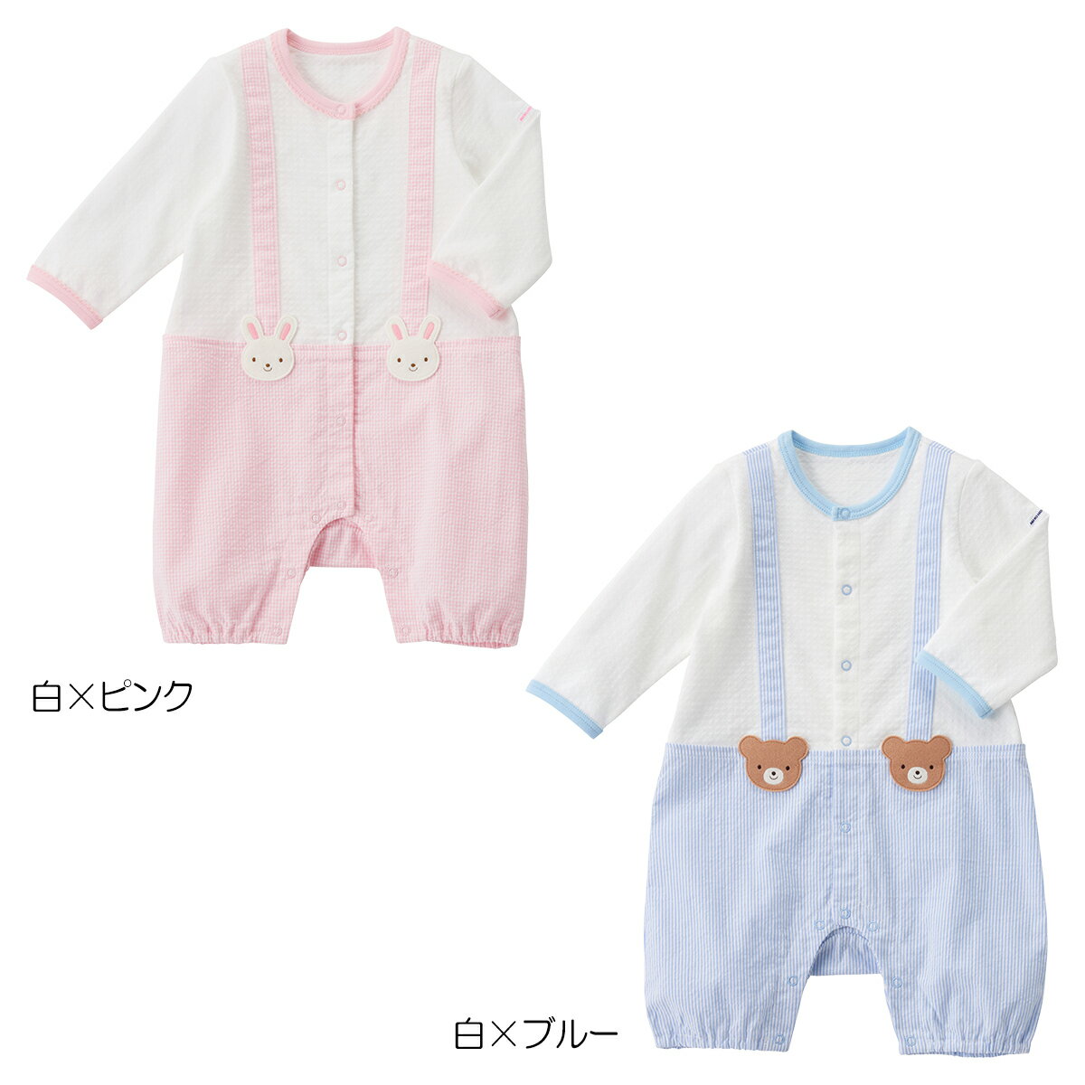 優しいくまちゃんとうさちゃんのお顔がついたサスペンダーパンツは人気のデザイン♪