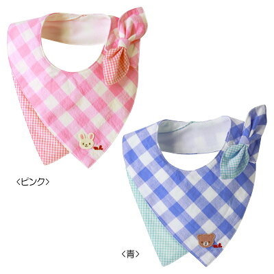 ミキハウス mikihouse くまちゃん&うさちゃんのスカーフ風スタイ(よだれかけ)